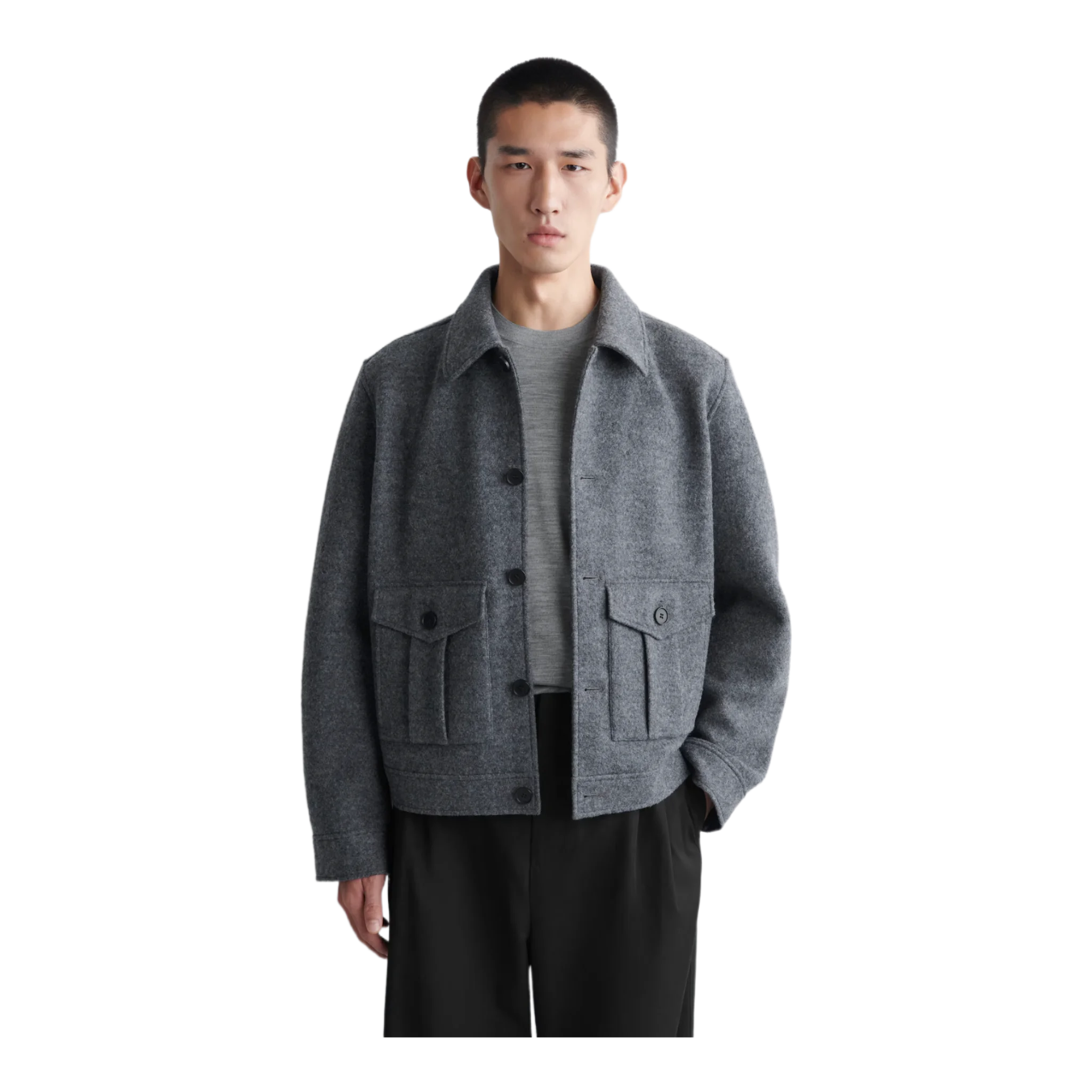 The COS outerwear collection is explored through quality fabrics and a considered colour palette. This refined jacket is made from premium wool that's boiled for tactility and features double-entry pockets at the front and a slip pocket inside the lining.