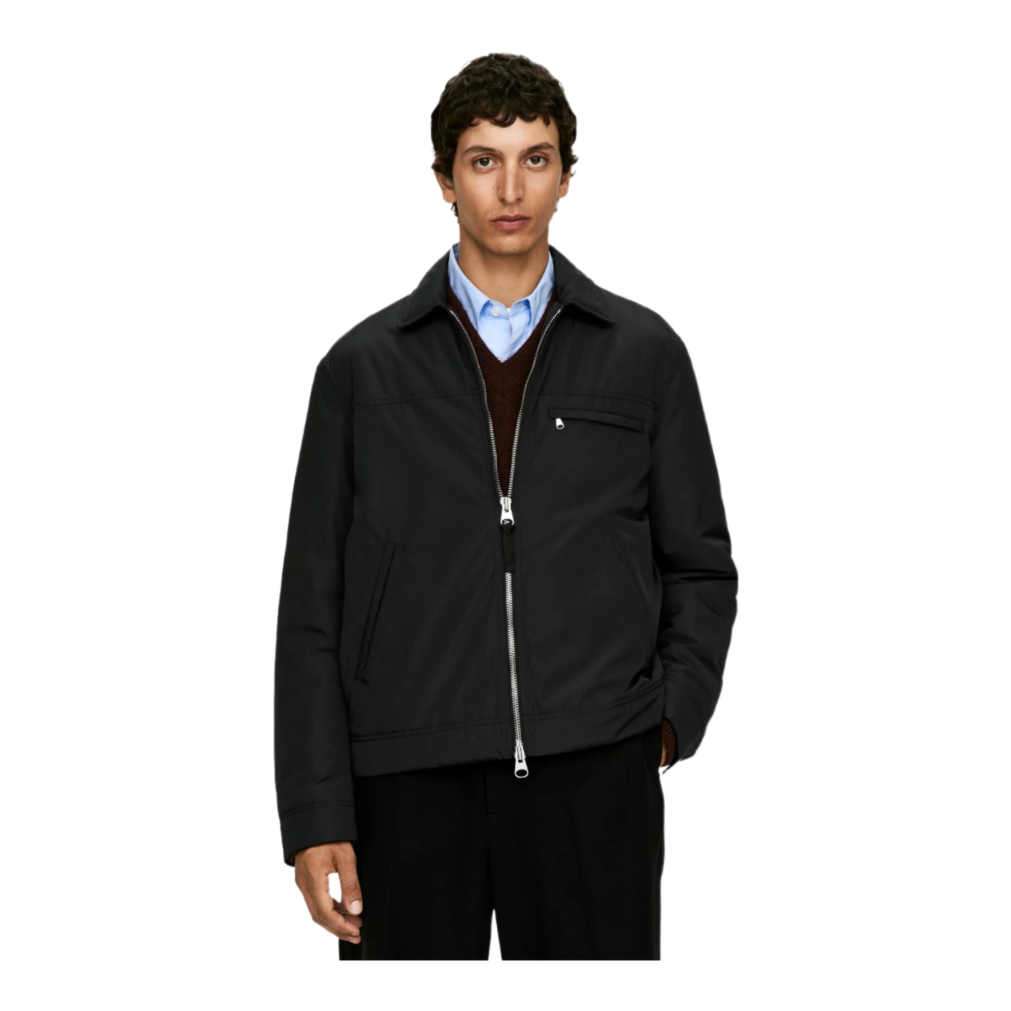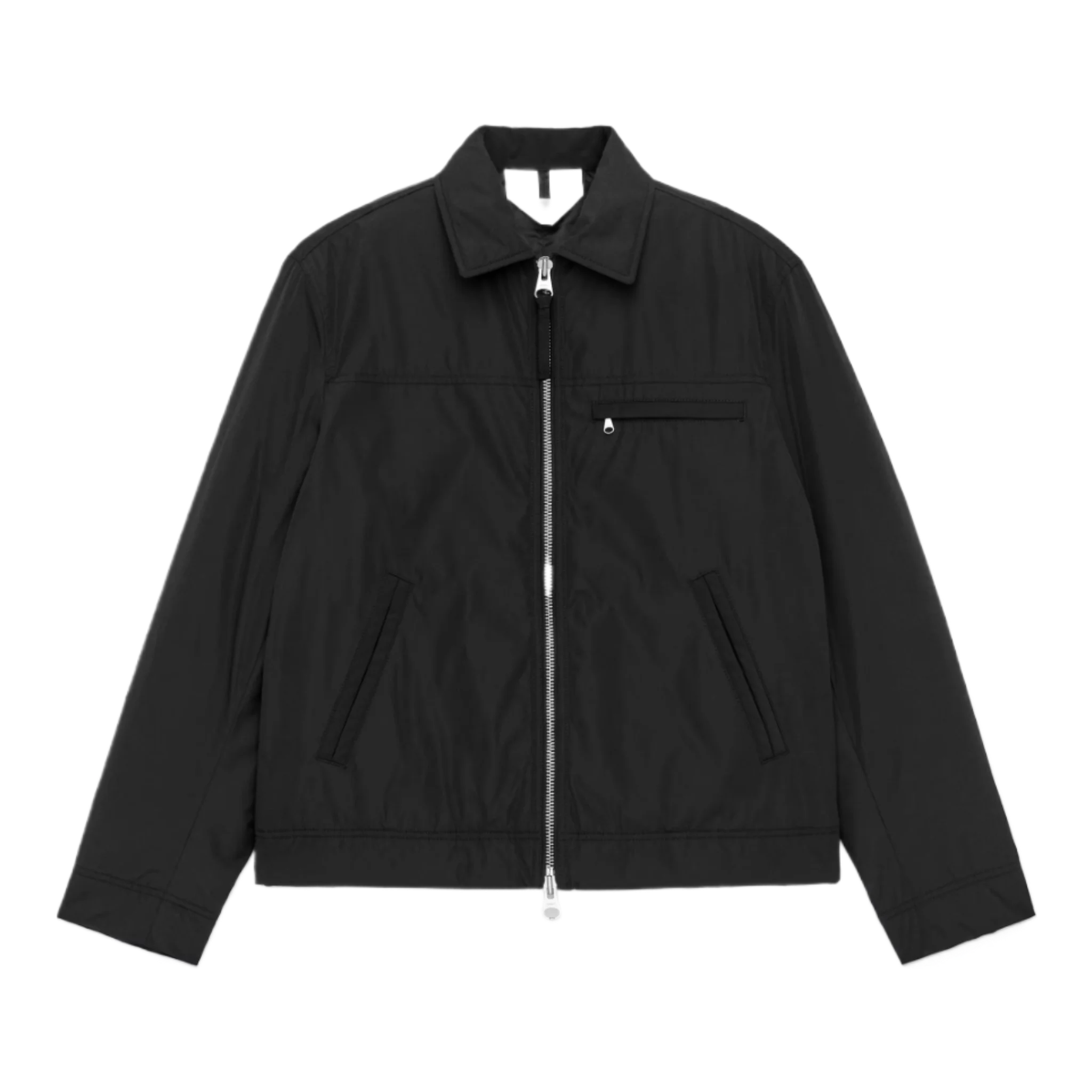 Nylon jacket with a quilted lining. Cut for a boxy fit and styled with a regular collar, a front zip and jetted pockets with zip closure. Tabs at hemline with snap buttons. Buttoned cuffs. One inner pocket with zip closure.