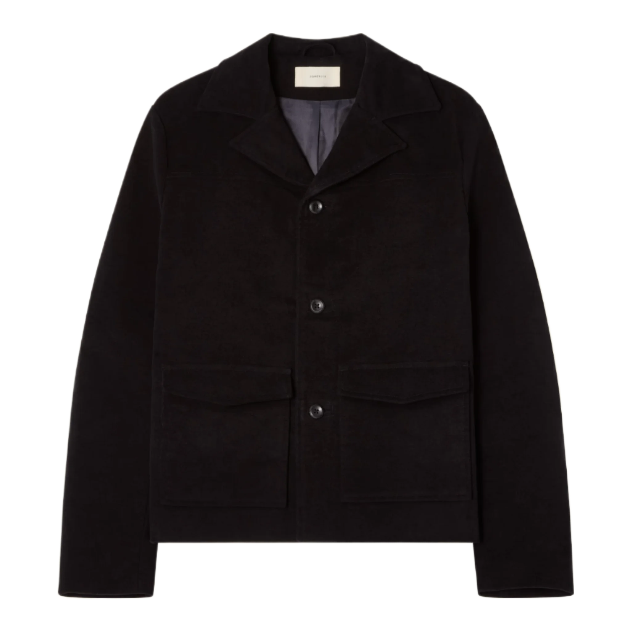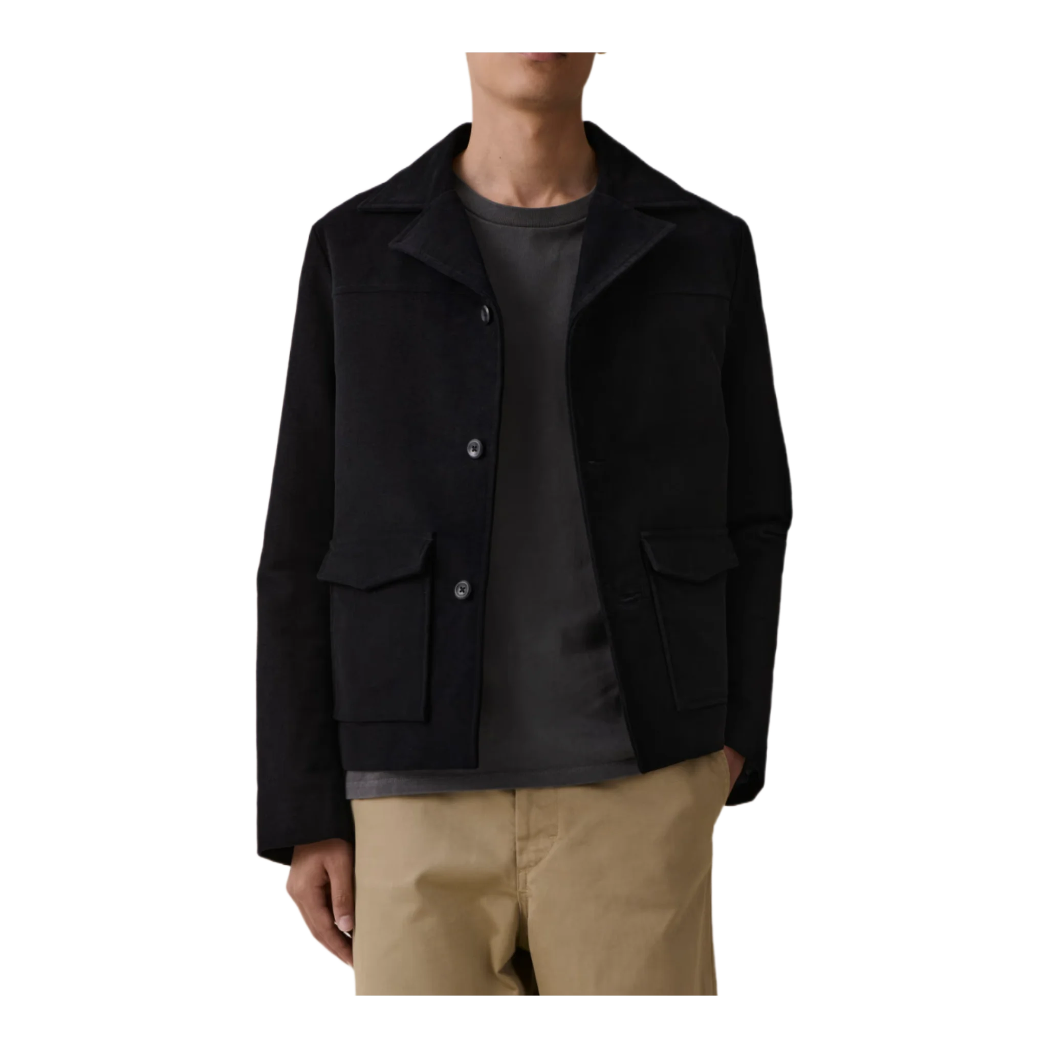 'Chet' is an tailored jacket with a boxy silhouette. Featuring front patch pockets, horn buttons, and distinctive collar and yoke details.