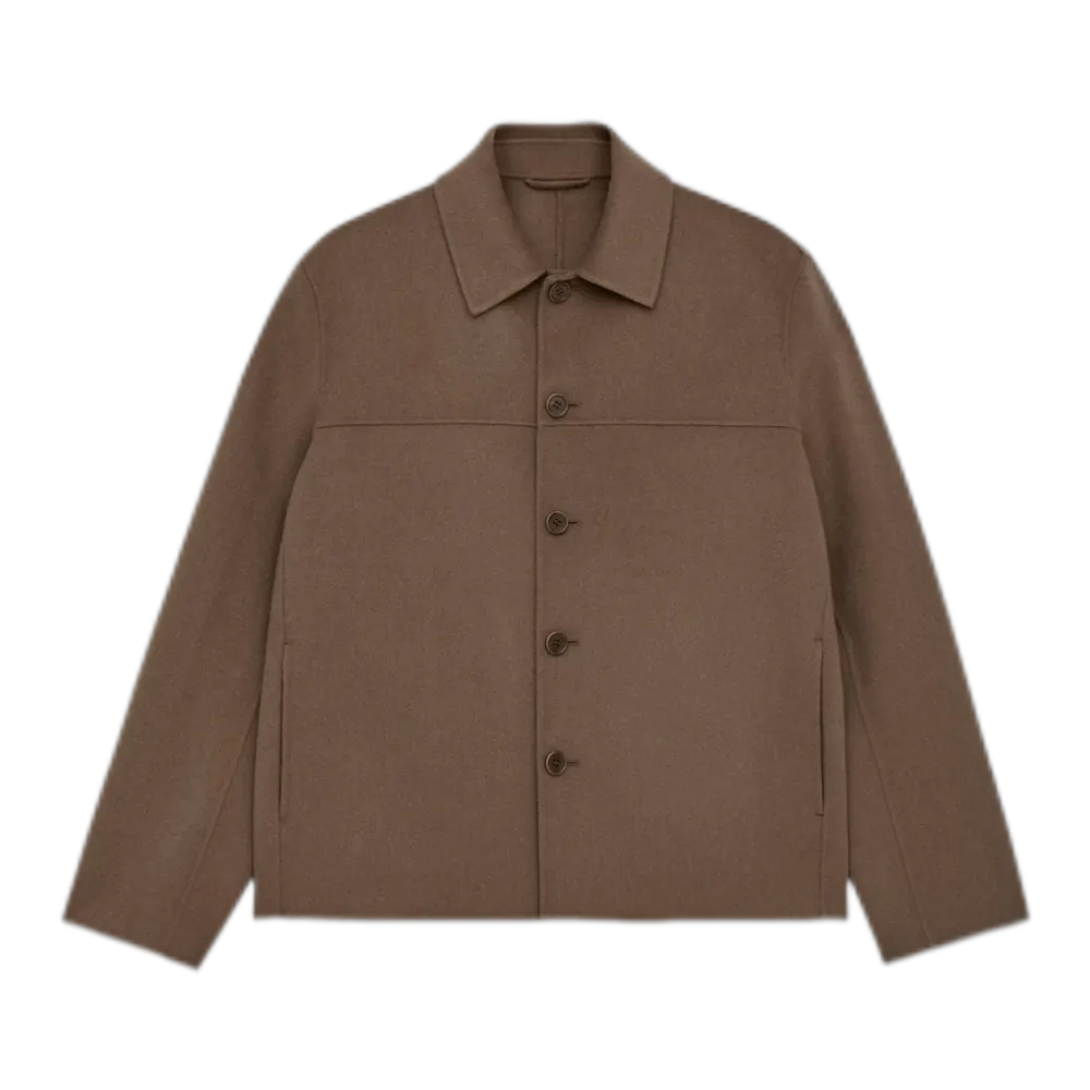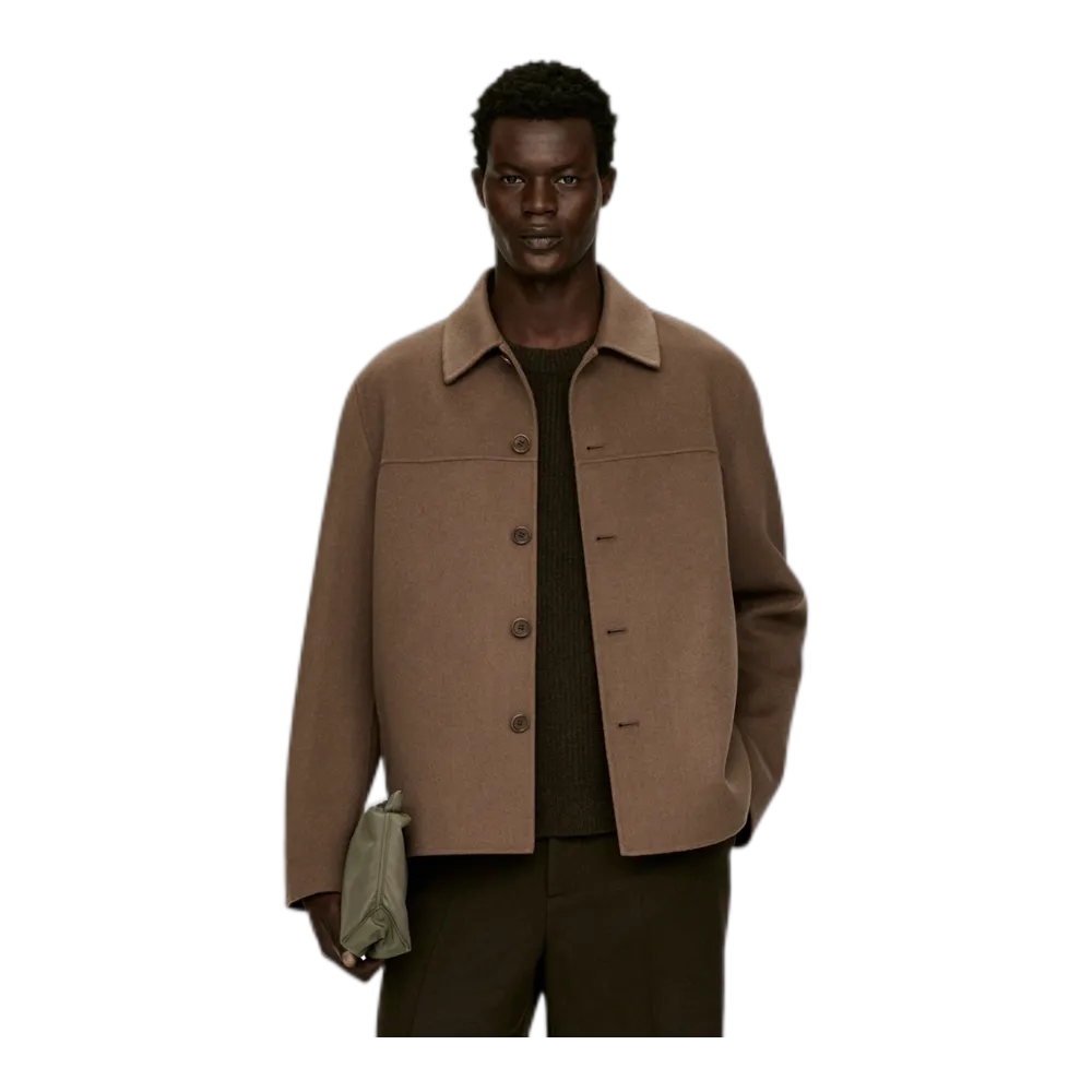 Short jacket made from a premium doublé wool fabric. Corozo button closure and pockets in side seams. Fully lined. Relaxed fit. The shell fabric contains 60% RWS wool (TE-00047206). Products certified to the Responsible Wool Standard (RWS) contain wool fiber from farms independently certified to animal welfare and land management requirements.