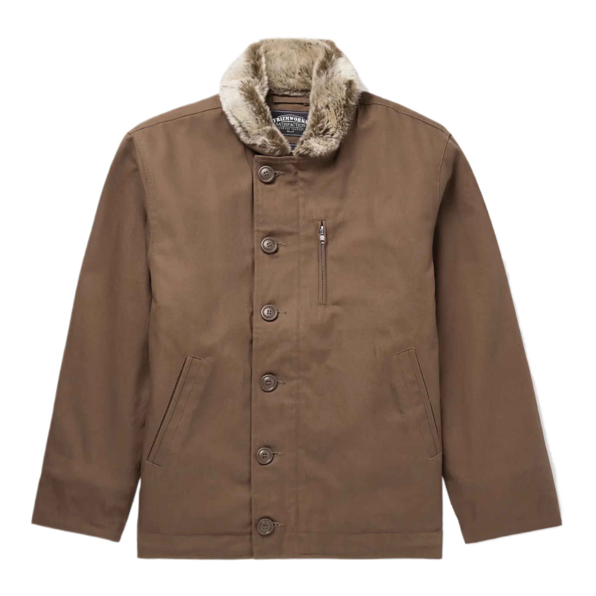 Modelled after traditional N-1 Navy uniforms, FrizmWORKS' 'Edgar' jacket has a distinct military influence. It's made from durable cotton-canvas and has faux fur trims on the collar that extend into a partial lining. Adjust the hem using the internal drawstrings.