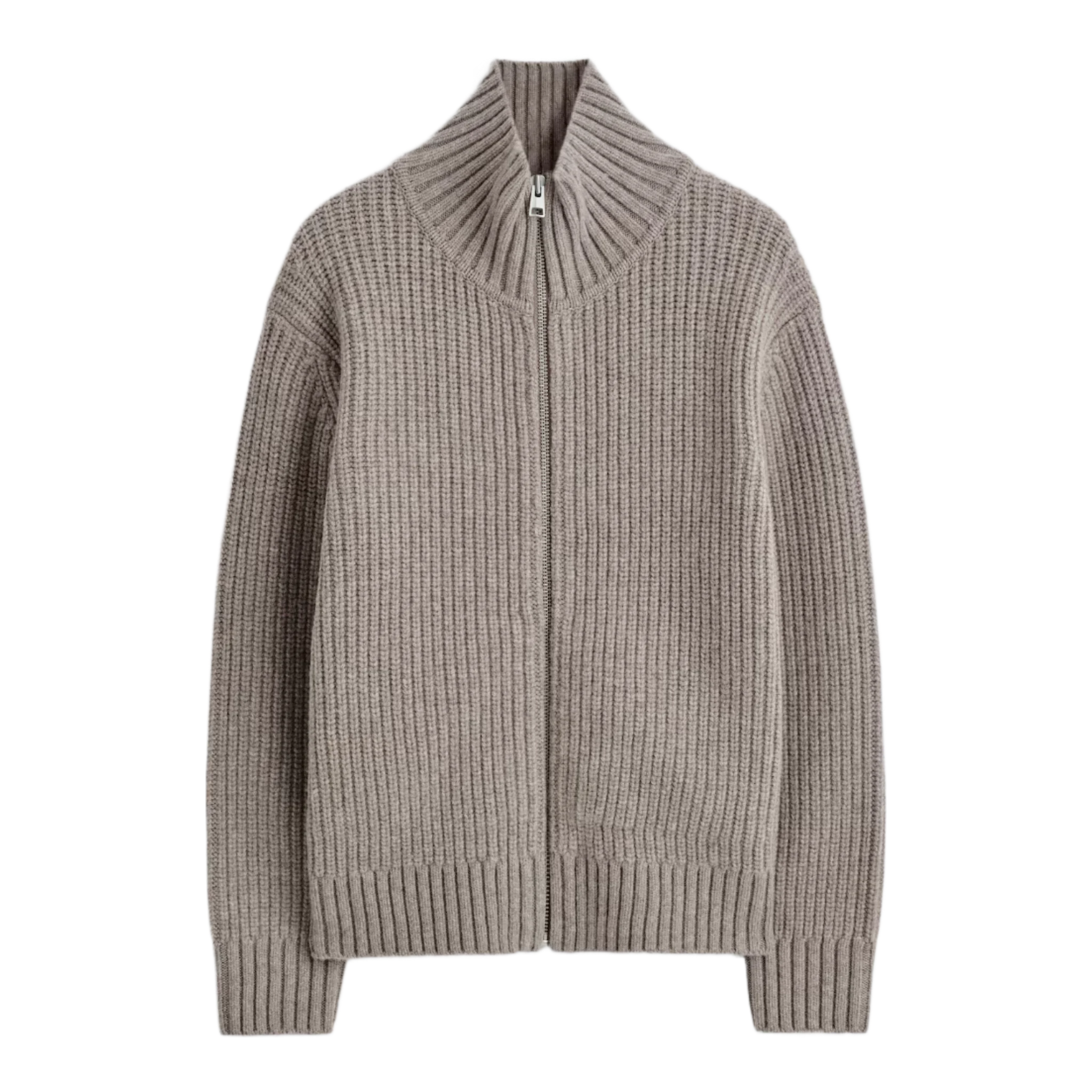 This modern jacket is knitted from soft, naturally insulating wool and designed with a silver-tone zip that can be fastened to the top to highlight the funnel-neck collar. The relaxed fit is roomy enough to accommodate layers underneath.