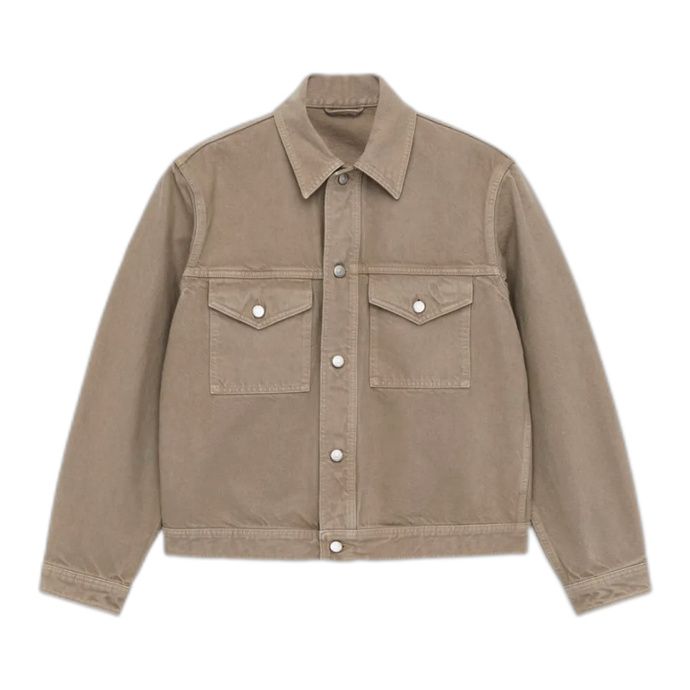 Garment-dyed denim jacket cut for a regular fit. Featuring a regular collar, front buttoning and two chest pockets with buttoned flaps. Cuffs with buttoning.