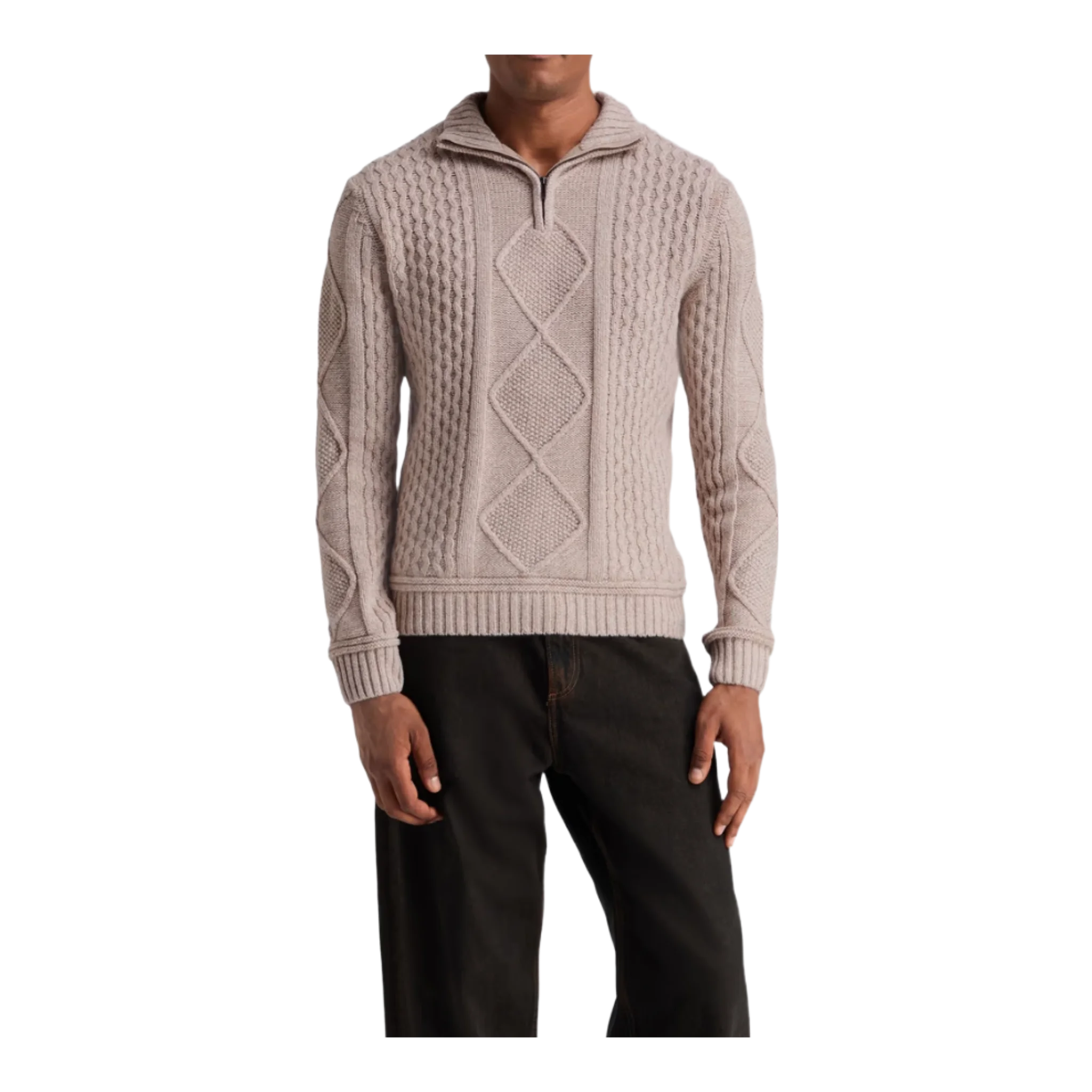 cable-knit merino wool and cashmere-blend half-zip sweater