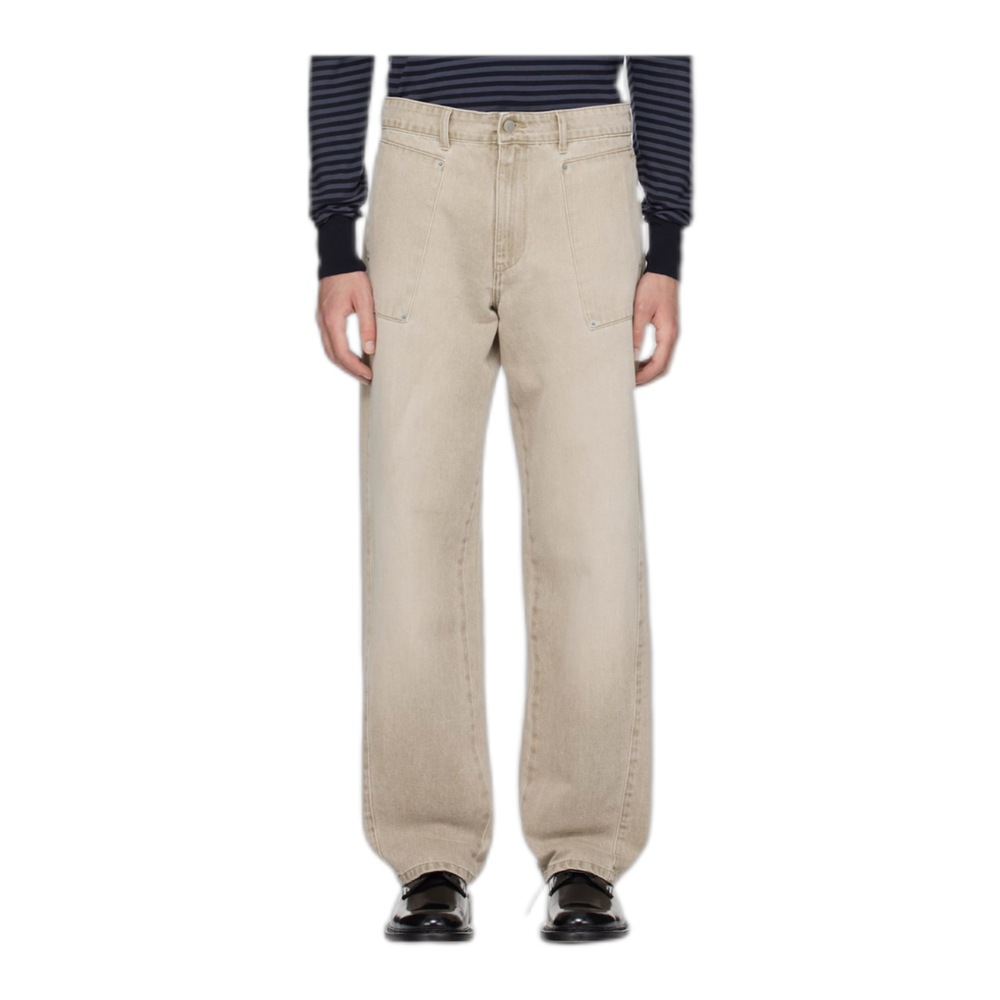 Non-stretch organic cotton denim jeans. Fading throughout.
